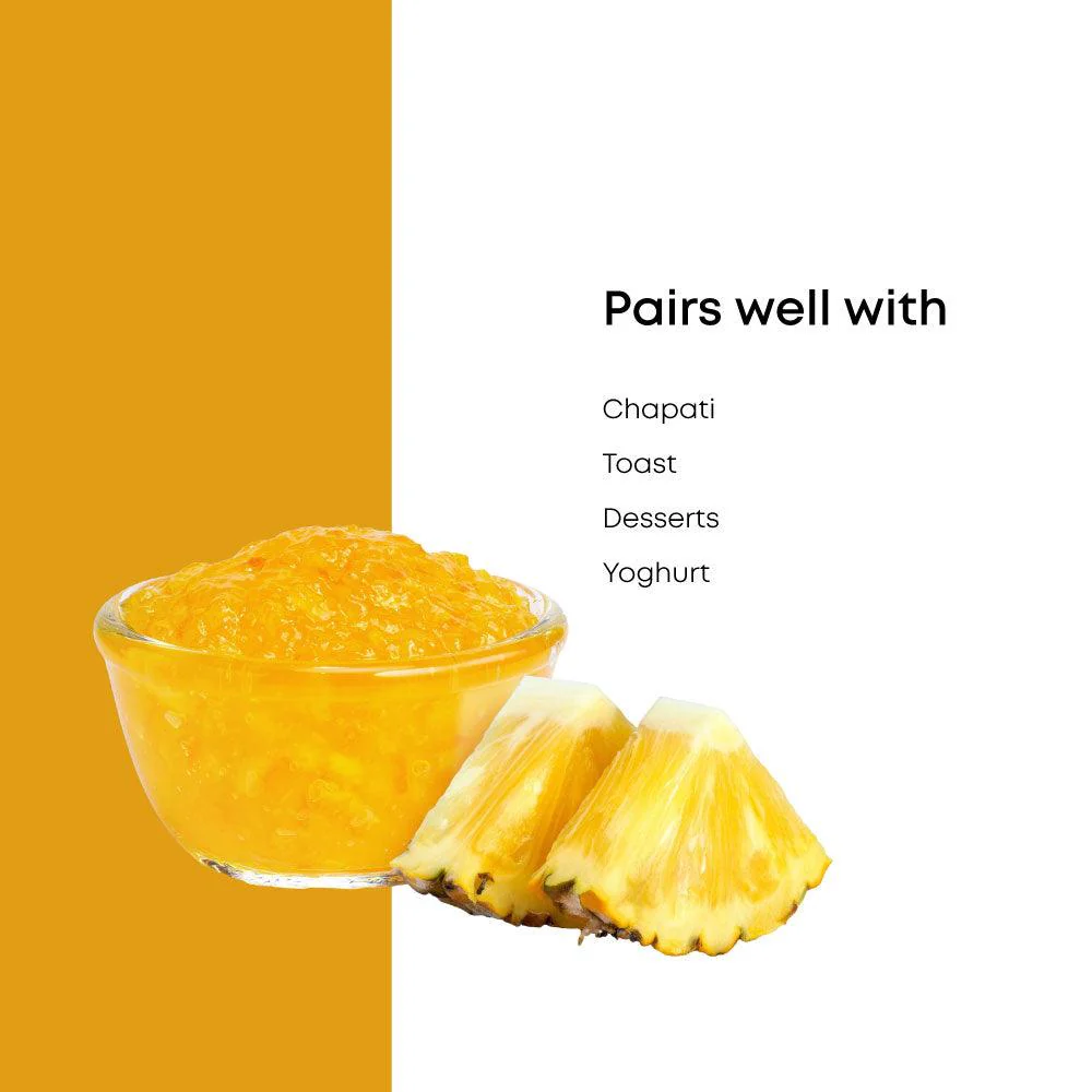 Treat your palate with the delectable blend of this sweet and sour pineapple jam to amplify your mood. Pulpy and succulent, this jam is assured to gratify and delight you.